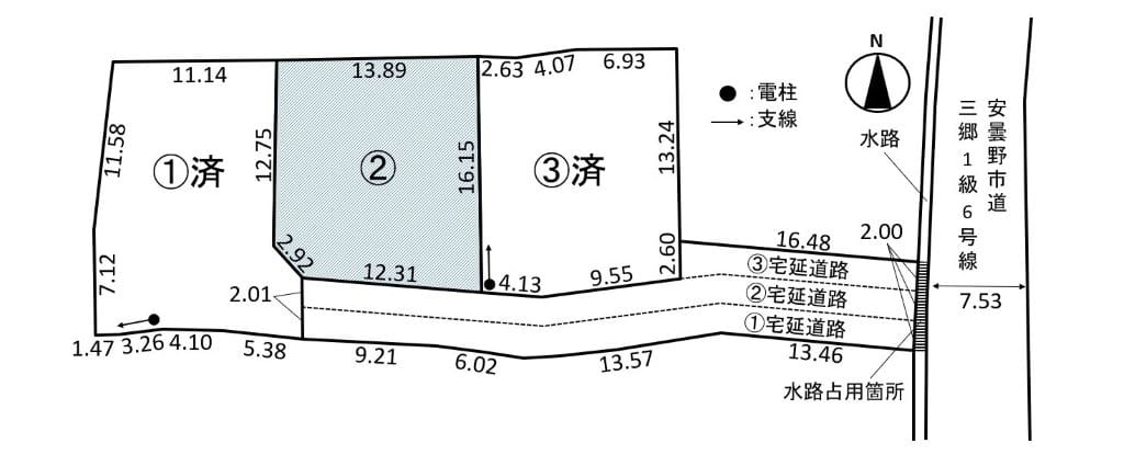・西側道路(国道18号)は都市計画道路です。12mの計画ですが、現在未整備です。・北西側道路及び南西側道路は市道です。4mに満たないため道路中心線から2mのところまでセットバックが必要になります。・下水道の宅内引込がありません。下水道を利用される場合は本管取出し費用と受益者負担金が必要になります。・電柱の移設は出来ません。