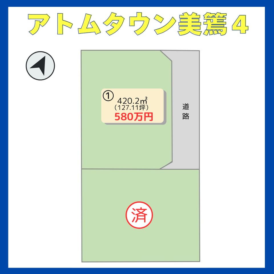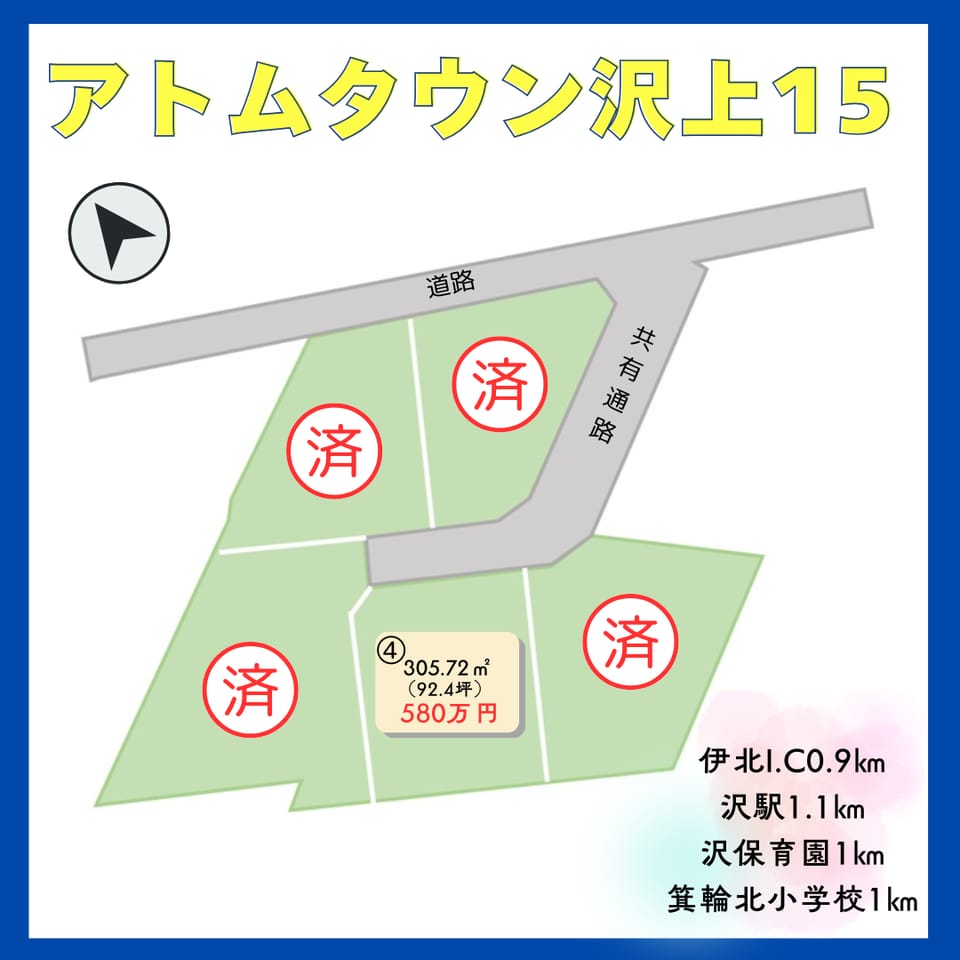 飯島小学校南側 小学校徒歩2分! 中学校徒歩3分! 南接道日当たり良好! 12坪の物置あり!